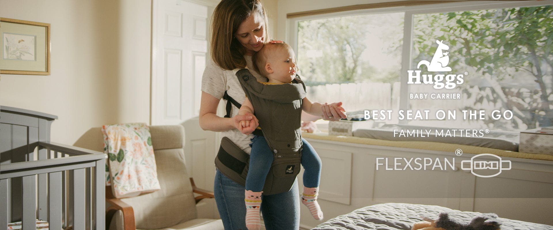 ENJOY REVOLUTIONARY COMFORT AND CONVENIENCE WITH THE HUGGS® BABY HIP CARRIER
